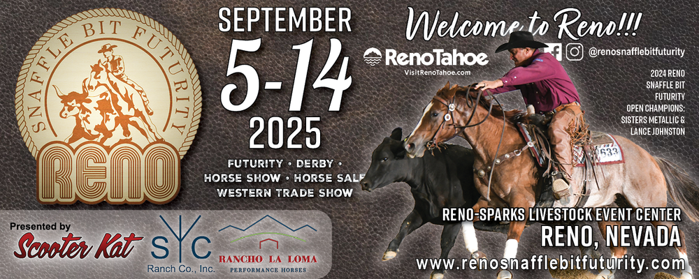 The 9th annual Reno Snaffle Bit Futurity, Derby & Horse Show kicks off Friday, September 5 at 8 a.m. and runs through Sunday, September 14! Come to Reno to watch in-person… admission is free for all cow horse fans! Or tune in daily to our live feed or live feed with live scoring to keep track of the scores!